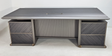 Modern Grey Oak Straight Office Desk with Herringbone Detailing and Built in Storage - 2400mm - DHH-D0124