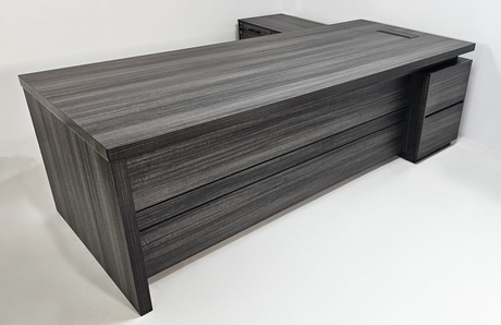 Large Executive Office Desk Real Wood Veneer - With Pedestal and Return - 2400mm - K3Y241