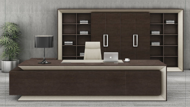 Luxury Executive Office Desk Chocolate Walnut and Leather - 3200mm - 06T321 - 3200mm / Left is backordered and will ship as soon as it is back in stock.