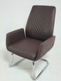 The DL205C visitor chair has a brown bonded leather upholstery. This chair has a modern design with a stylish diamond stitch on the outside of either arm and going up the back of the chair. The DL205C has fixed arms that are generously padded for the user's comfort. This chair has a heavy-duty chrome cantilever frame that supports weights up to 120kg.