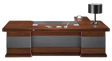 The U9C241 is a large executive office desk, supplied in either a real walnut veneer or a real black ash veneer. This executive office desk has a large black leather detailing which stretches around the front and side panels of the legs. Two large cable holes and a huge black leather writing pad are integrated into the desktop. This model is also supplied with a pedestal and side return which are on castors and are fully mobile.