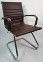 Contemporary Eames-Style Cantilever Visitor Chair in Brown Leather - HB-E13