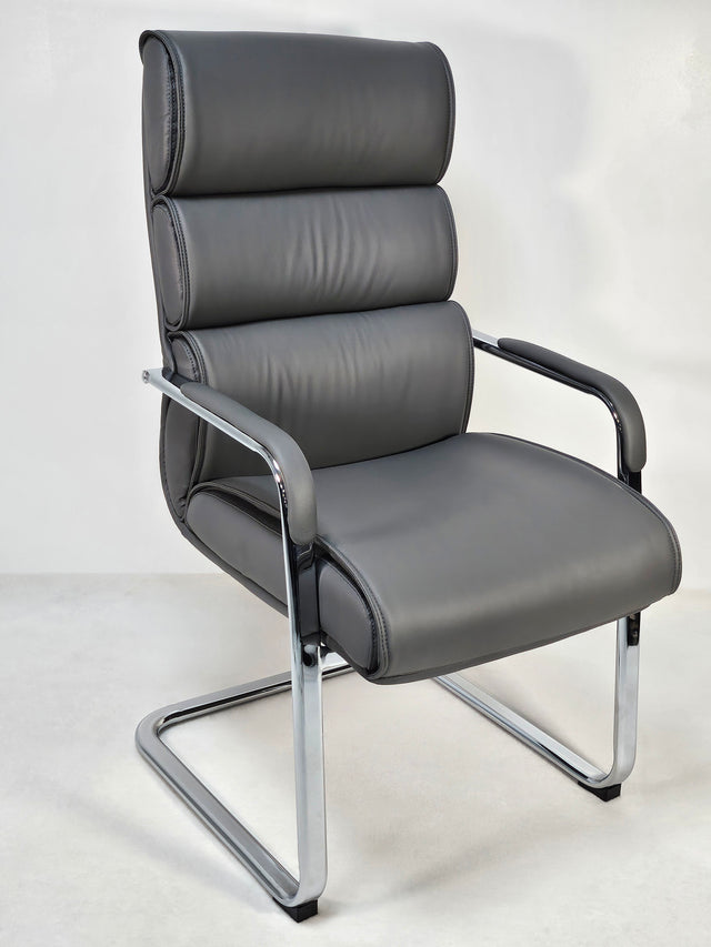 Modern High Back Grey Leather Visitor Chair - HB-286C