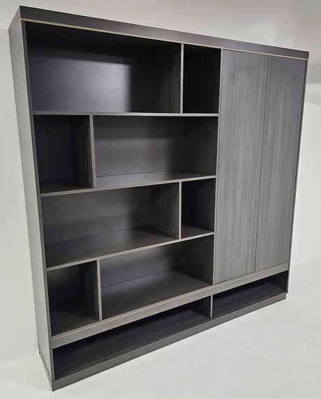 Large Modern Grey Oak Open Bookcase with Two Doors - 2000mm - BWJ-HS0220
