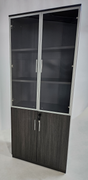 The DG25-S0408 is a stylish two-door bookcase finished in contemporary grey oak melamine. Measuring 800mm wide, it offers a practical combination of secure storage and display. The lower section features double doors in matching grey oak, complete with a lock for added security. The upper section is fitted with tempered glass doors framed in aluminium, ideal for showcasing books, files, or decorative items while maintaining a professional look.