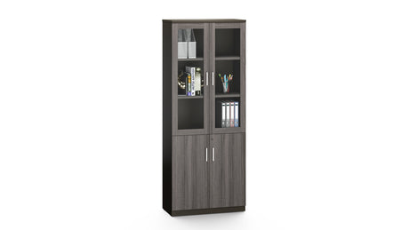 Modern Grey Oak Veneer Two Door Glass Bookcase - 800mm - DG16-S0308
