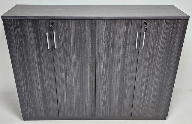 The S0616 has a modern design finished in our grey oak veneer. This 1600mm wide cupboard features two sets of double doors with locking capabilities. Each lock comes with a set of two keys. Behind these doors, is a height-adjustable shelving, which is adjustable to preset heights with removable pegs.