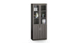 The DG16-S0308 has a modern design finished in grey oak. This bookcase has a modular design and can be used in a row with multiple bookcases. The first set of doors are on the lower part of the bookcase and have been made in matching grey oak and have locking capabilities. The second set featured in the higher section of this bookcase has glass doors.