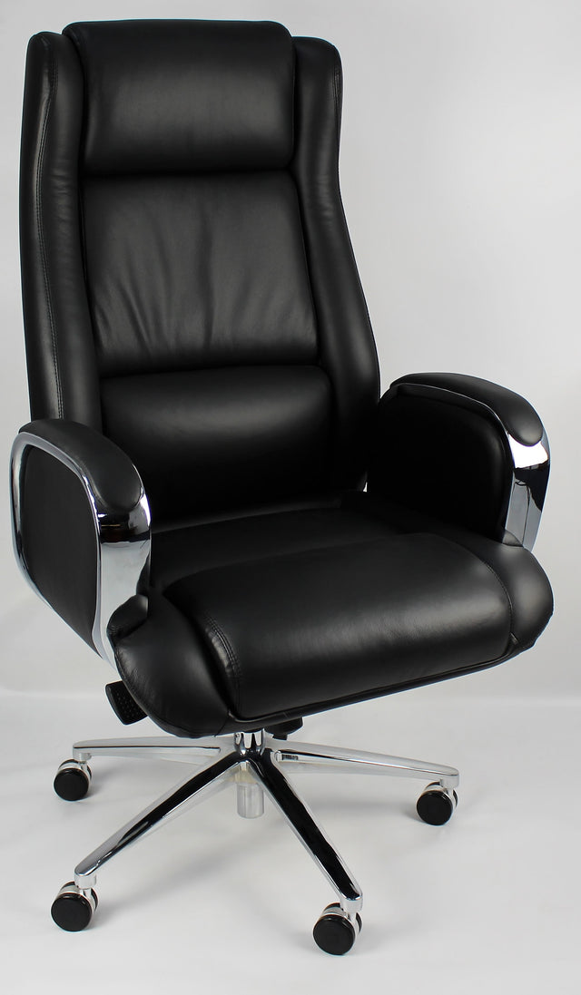 Black Leather Executive Office Chair with Chrome Trimmed Arms - J1201