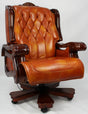 Luxury Executive Office Chair with Wooden Arms and Genuine Tan Leather - J001