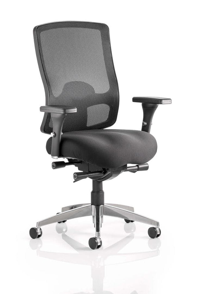 The Regent is ergonomically designed and has a luxurious cold cure foam seat that provides a pleasant seating experience for the most demanding environments. The chair has many adjustment options thanks to its quality multi-functional mechanism and soft adjustable armrests. The stylish high backrest which is upholstered in a breathable mesh is easily height adjustable and equipped with height-adjustable lumbar support. Finished elegantly with a brushed aluminium base, this chair is an all-around solution.
