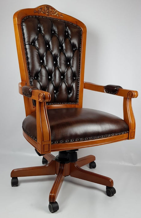 Solid Wood Frame High Back Real Brown Leather Chesterfield Captains Chair - HSN-CPT-02