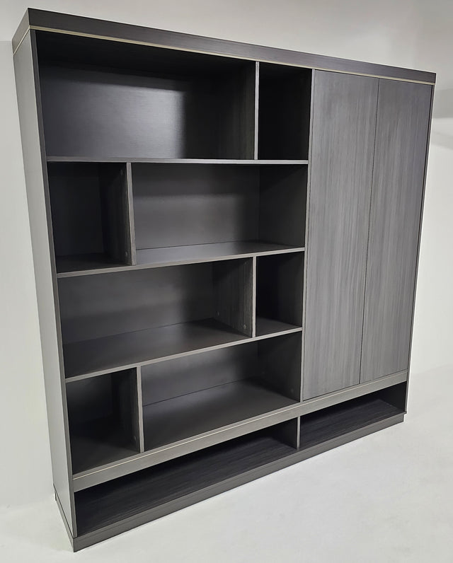 Large Modern Grey Oak Open Bookcase with Two Doors - 2000mm - BWJ-HS0220 is backordered and will ship as soon as it is back in stock.