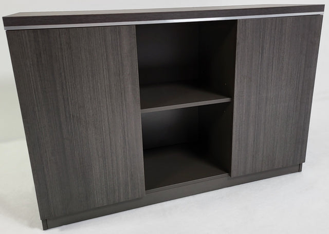 The DG07-S0312 has a modern design finished in grey oak. This 1200mm wide cupboard features two doors at either end concealing height adjustable shelving. Which is adjustable to preset heights with removable pegs. In the centre of this unit, you'll find an open shelving unit which is also adjustable, as mentioned above. This cupboard has an aluminium edging which ties into the modern theme.