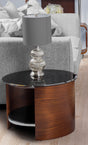 Round Black Glass Lamp / Side Table with Walnut Veneer - 610mm - JF303