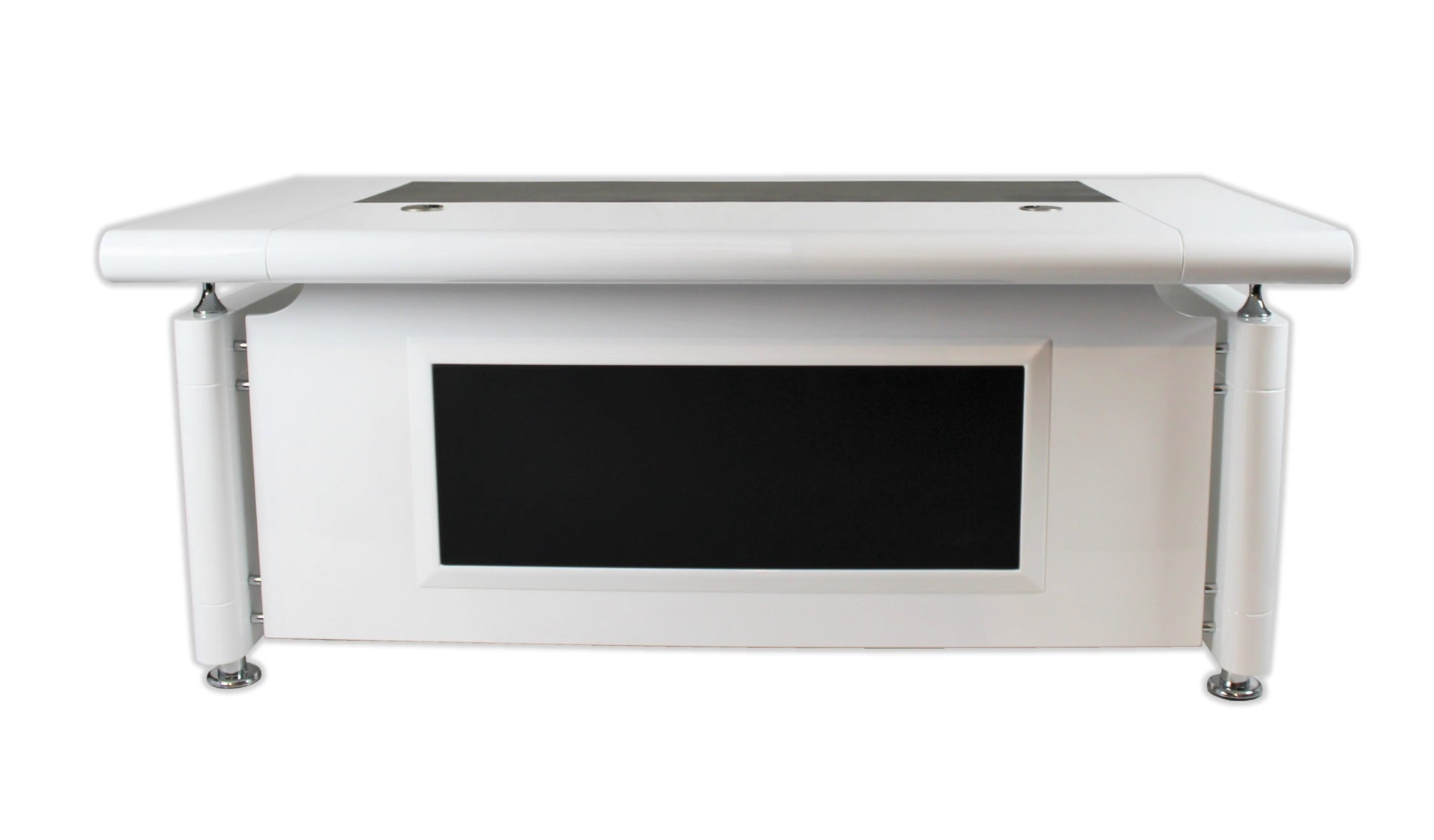This is a high-quality desk designed for any executive office and finished in a durable high gloss white lacquer.