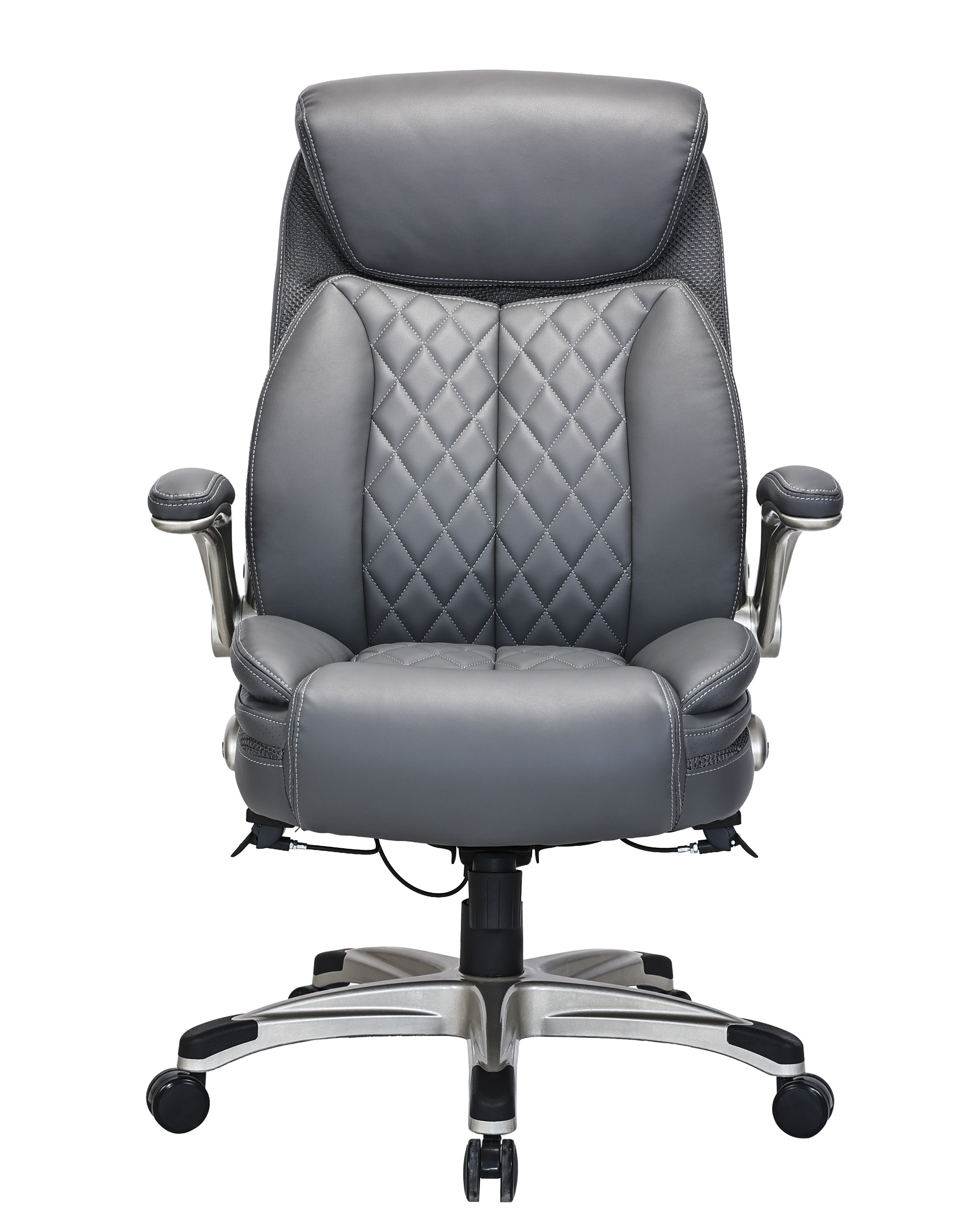 Quality Diamond-Quilted Bonded Leather Executive Chair with Flip Arms – Grey - 2236E