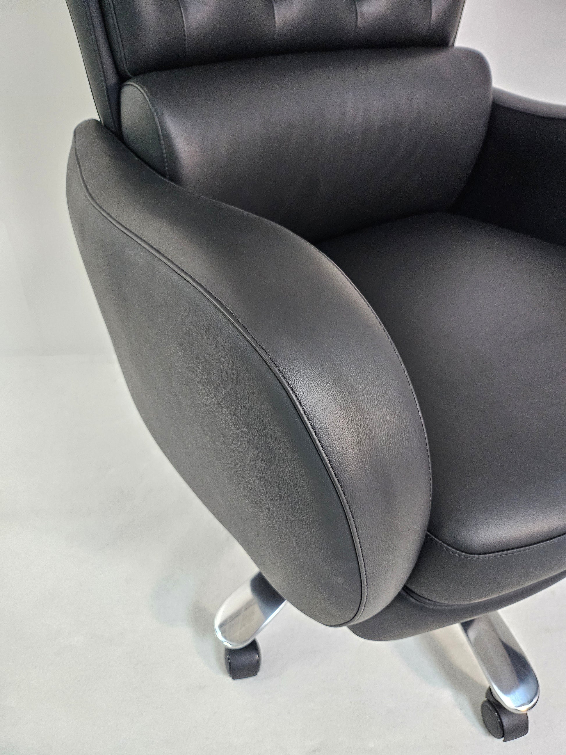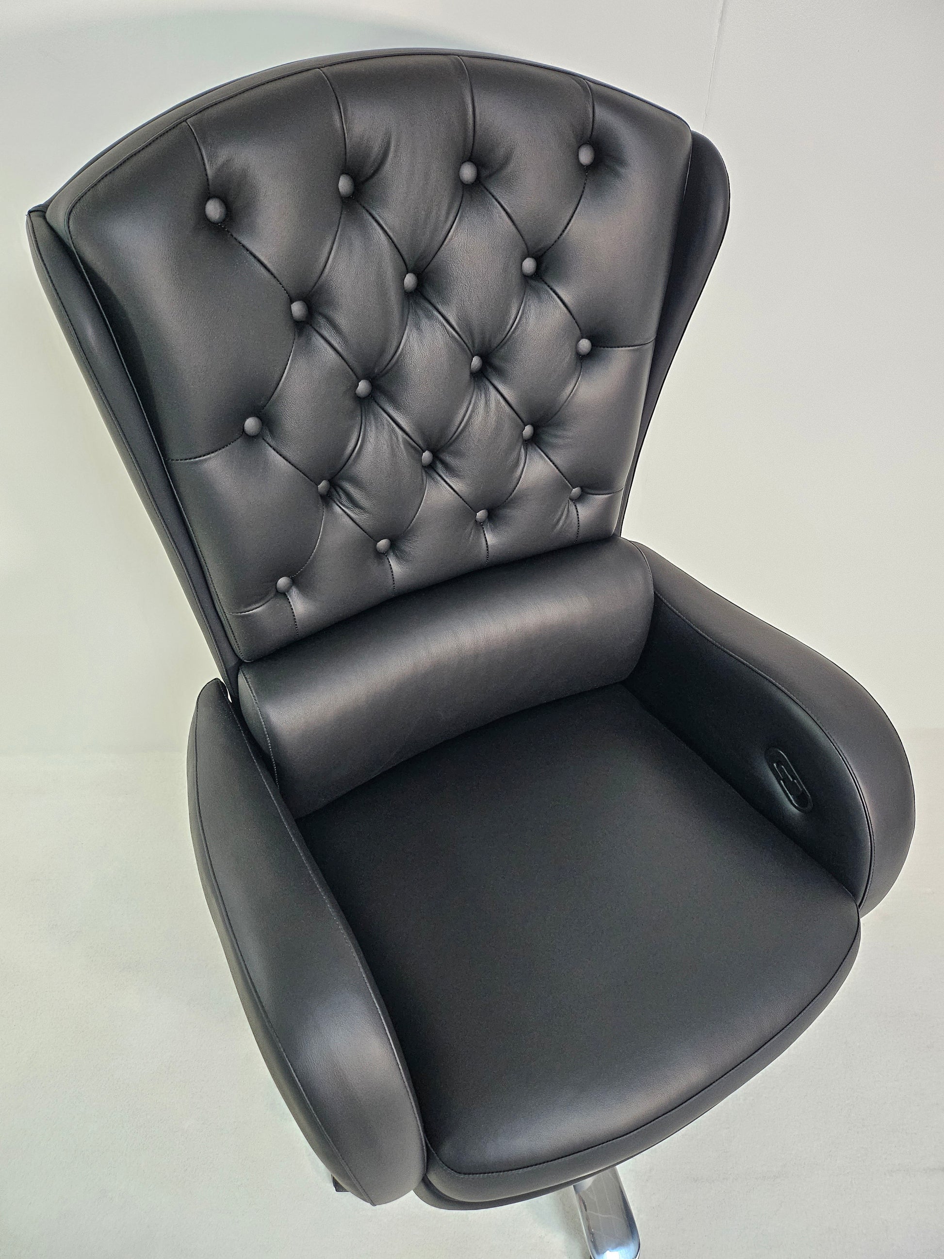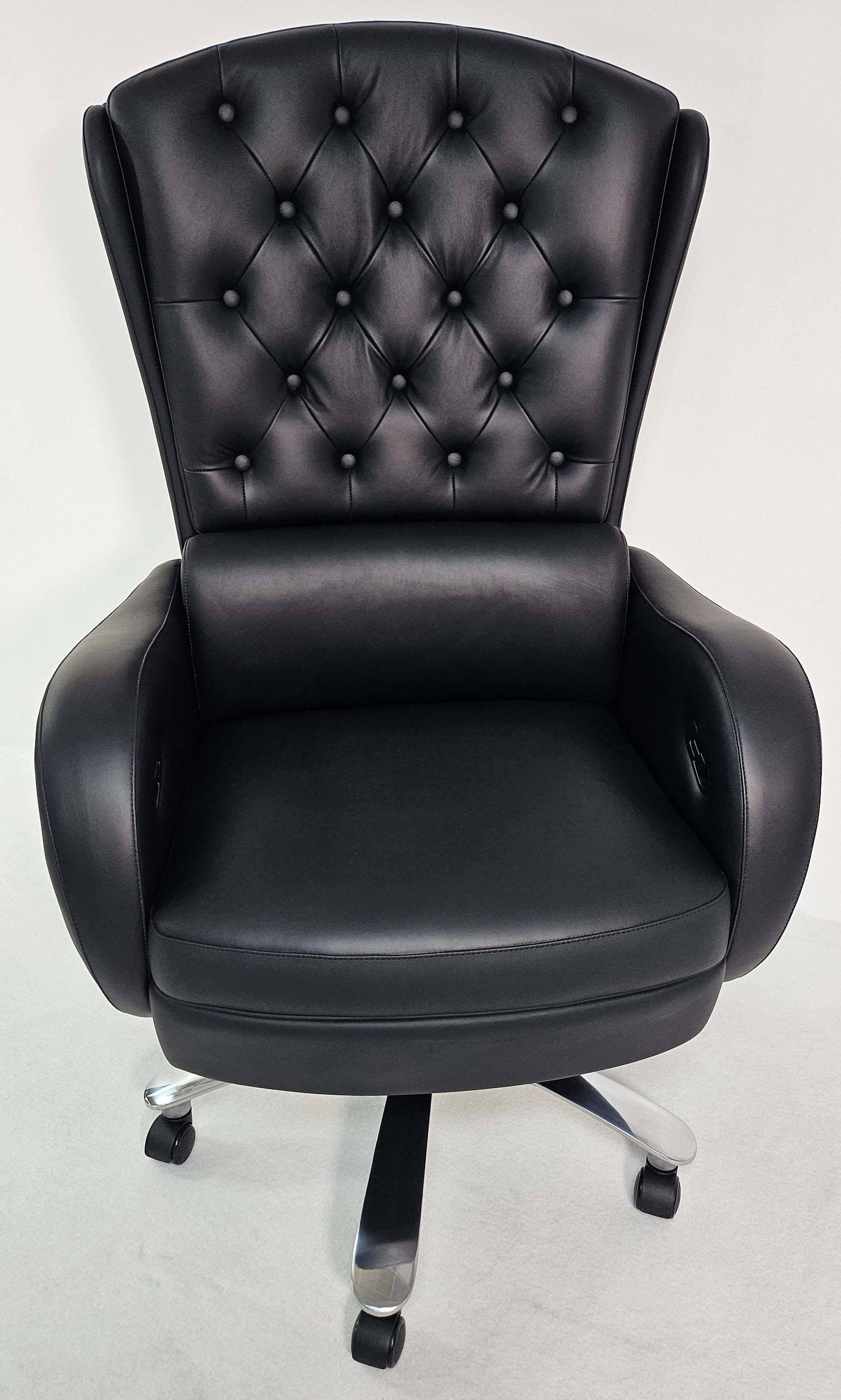 Genuine Black Leather High Back Executive Office Chair with Chesterfield Design - 6002HL