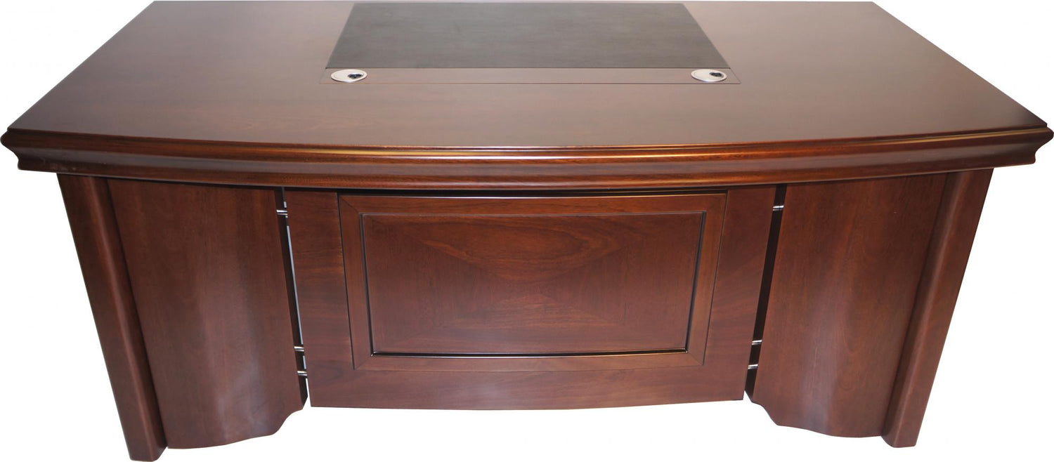 The DSK-70202U is a stylish executive office desk finished in light walnut, combining contemporary elegance with a strong executive presence. The design is highlighted by an attractive, substantial bow-fronted desktop and smoothly contoured yet robust legs, creating a balanced and confident aesthetic.