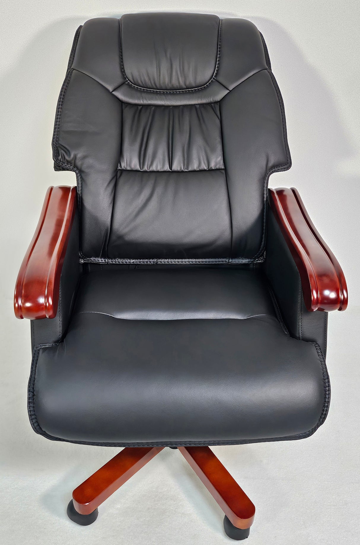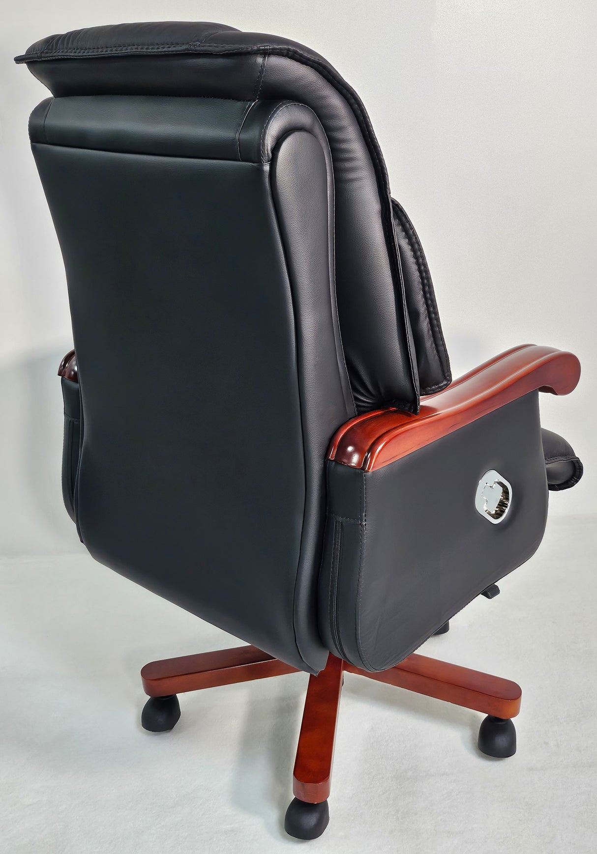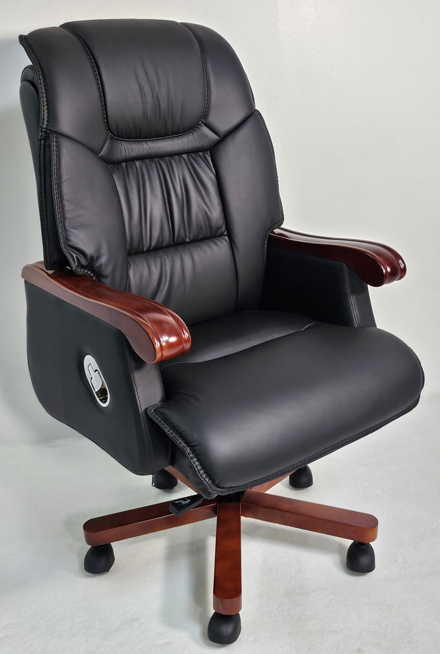 Genuine Black Leather Executive Reclining Office Chair with Walnut Arms - 893