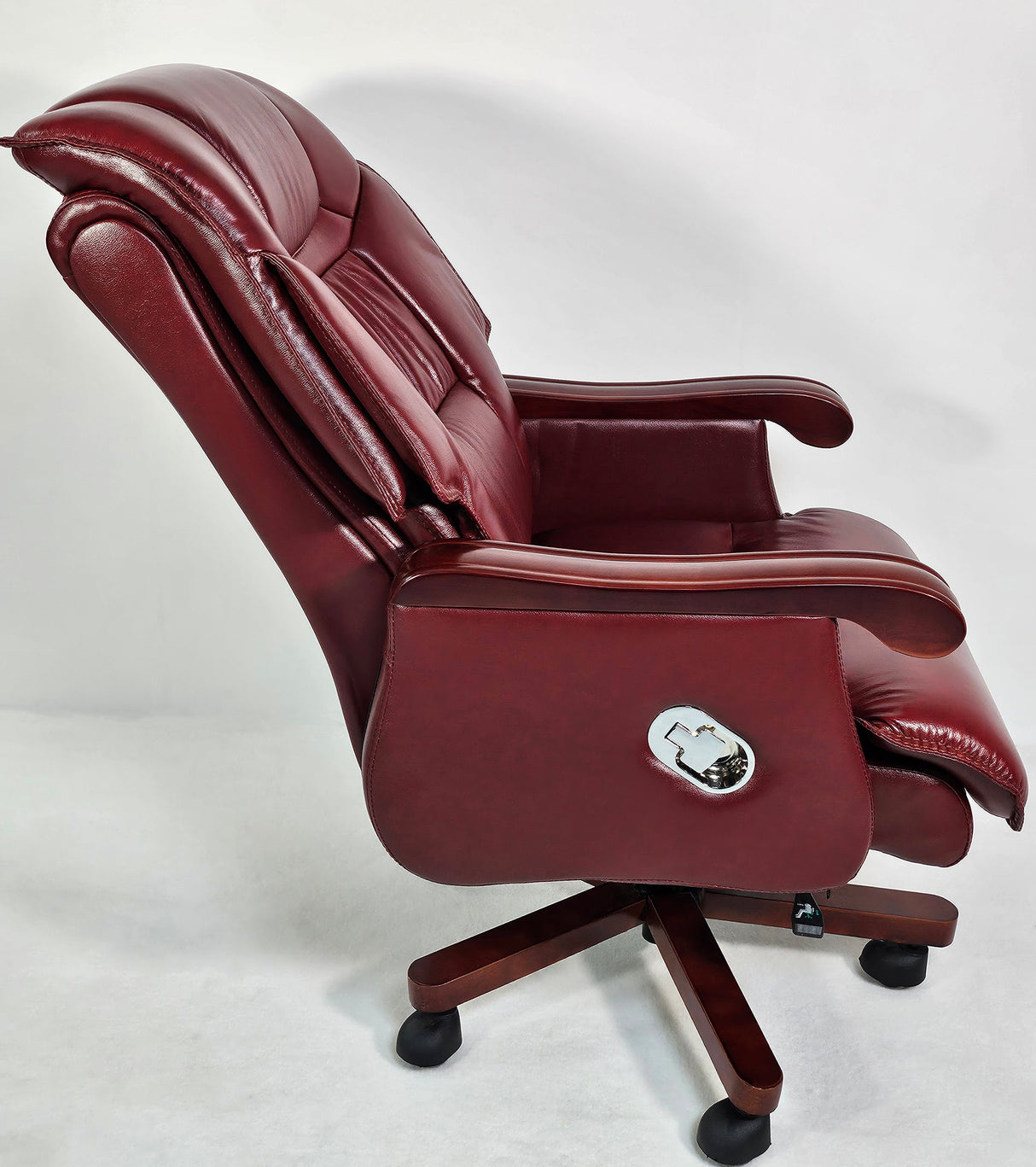 Genuine Burgundy Leather Executive Reclining Office Chair with Walnut Arms - 893
