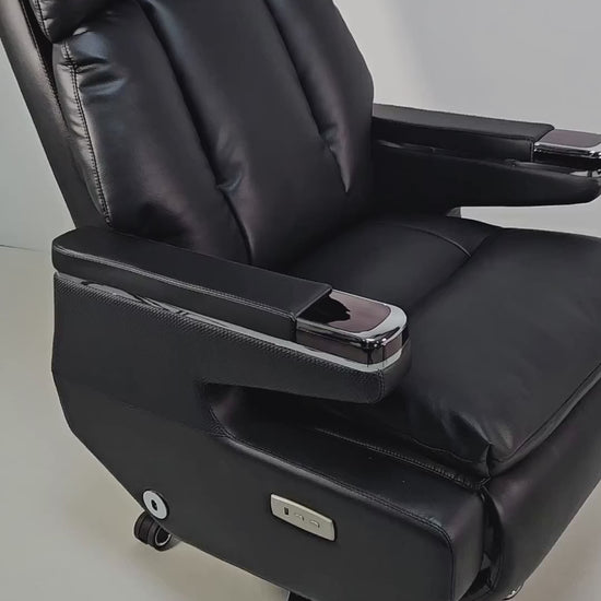 Electric Reclining Executive Leather Office Chair with USB A Charging Port - Black - A2321