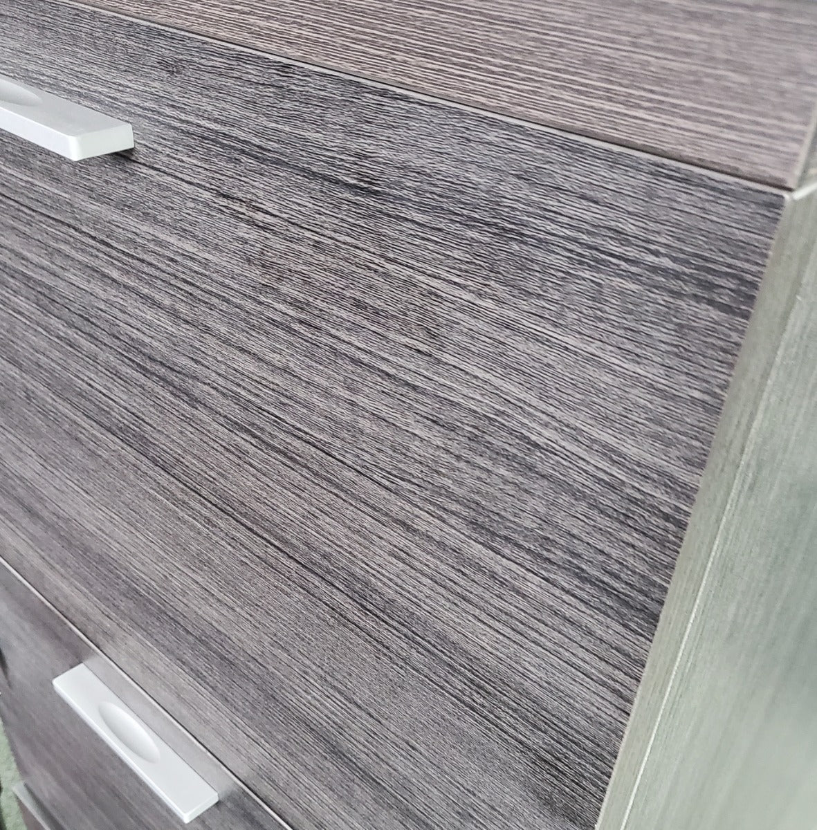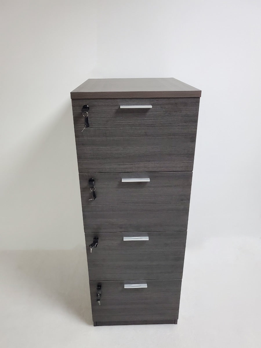 The AB84-DG04 filing cabinet has been finished in our high-quality grey oak melamine. This filing cabinet has four drawers with individual locks on each drawer. Every lock comes with a set of two keys. This filing cabinet is designed to hold standard suspension files. NOT Foolscap Files.
