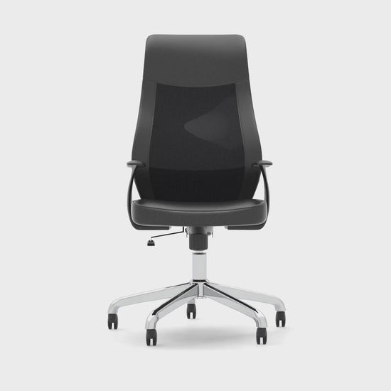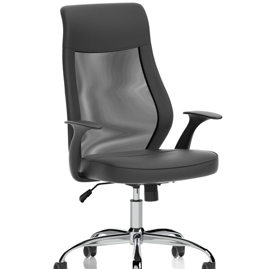 Baye High Mesh Back Task Operator Black Leather Office Chair with Fixed Arms