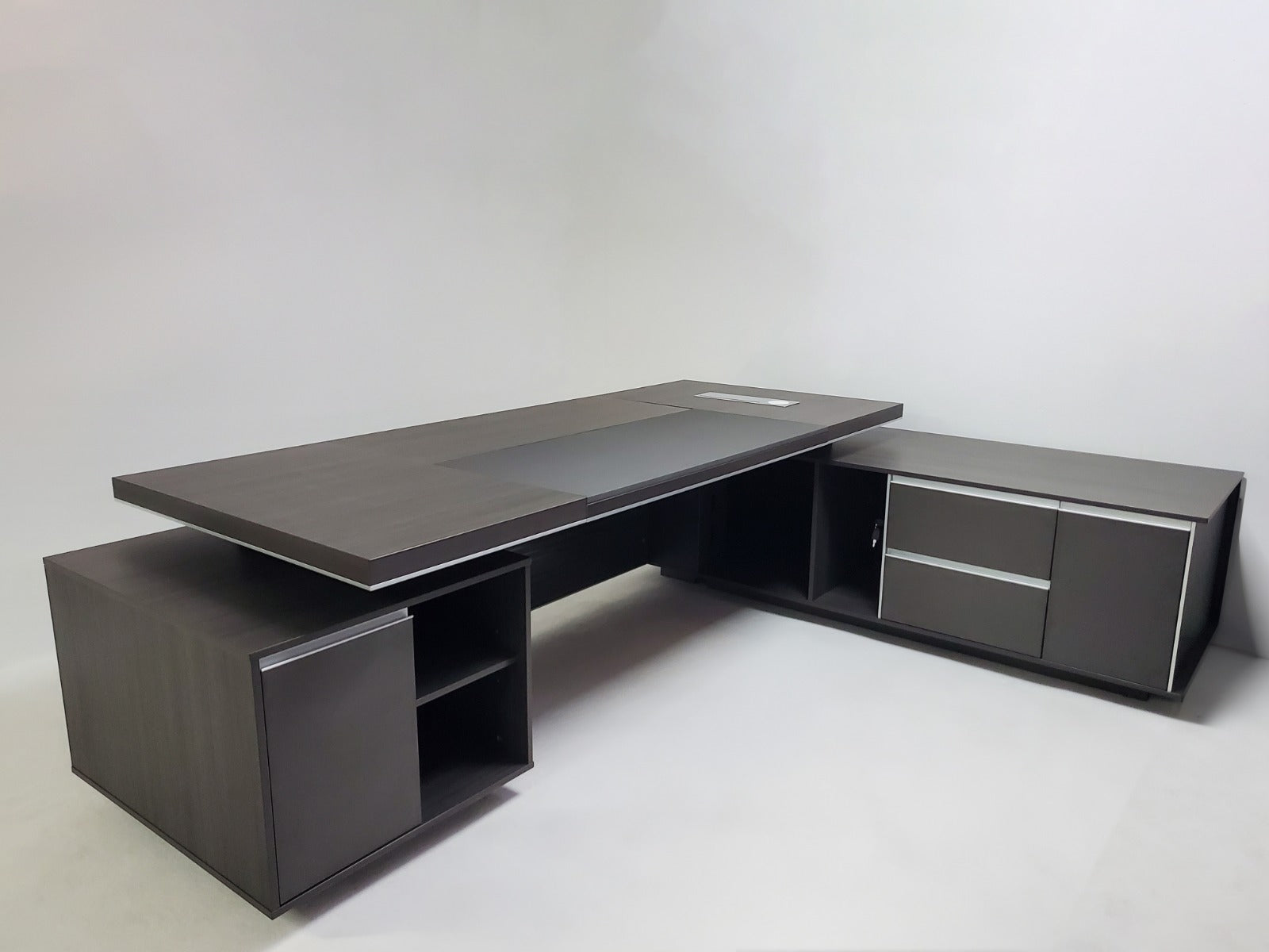 Large Modern Grey Oak Executive Office Desk with Integrated Cupboard and Return - 2800mm - BJS-D0128