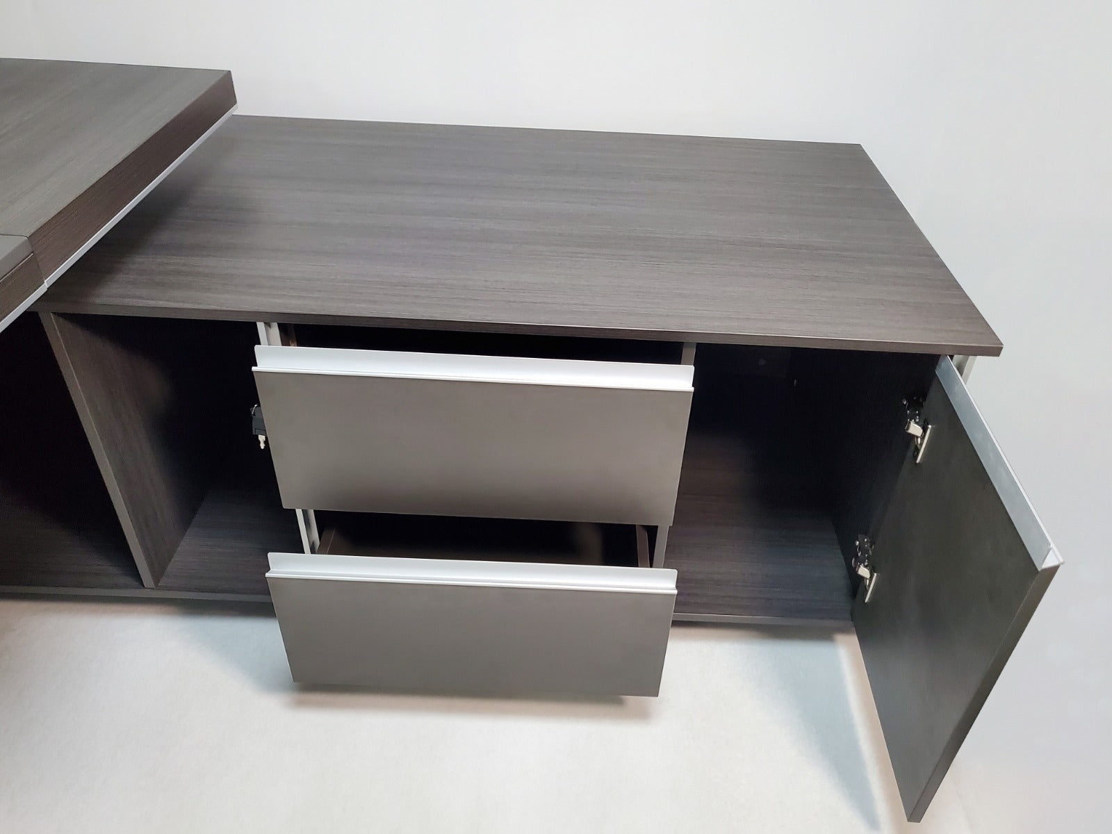 - Features: Cable Management, Corner Design, Desk, Drawers, Includes Return, Modesty Panels, Premium, Wooden