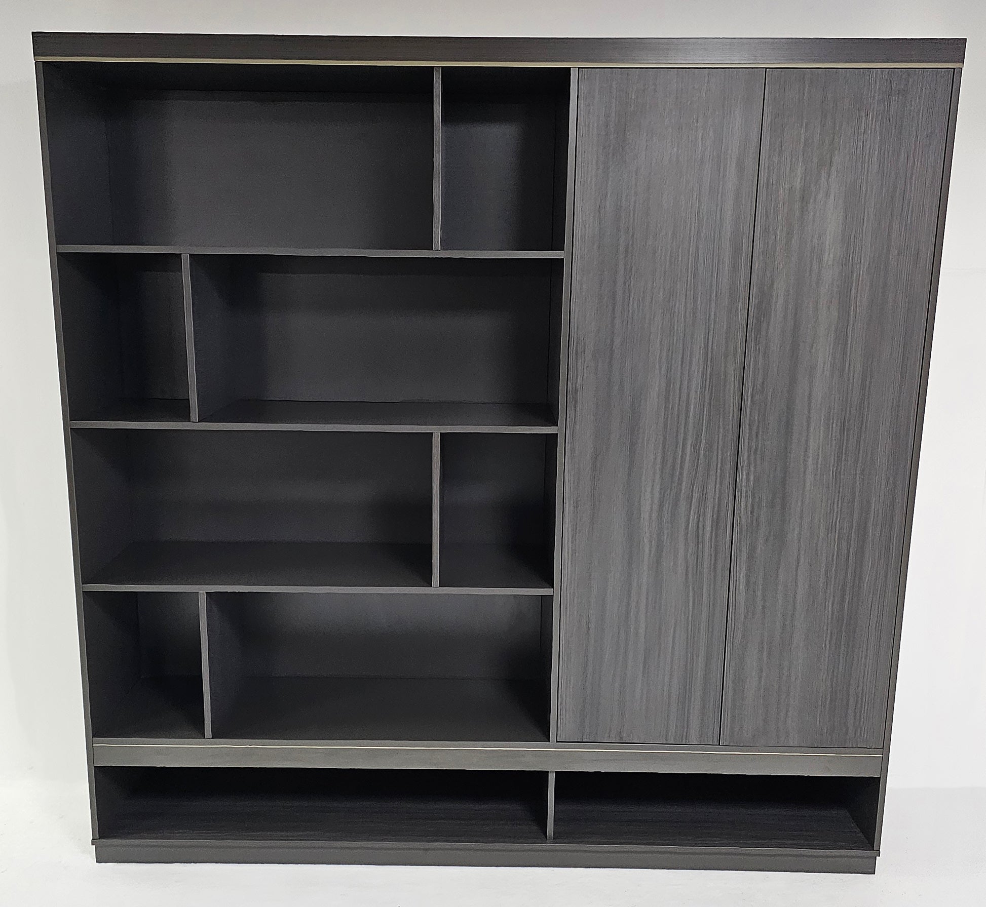 The modern BWJ-HS0220 bookcase is finished in our premium high-quality grey oak melamine. Designed to incorporate a mixture of open and concealed shelving. The open shelving unit features fixed shelving and behind the doors, the shelf is adjustable to preset heights.