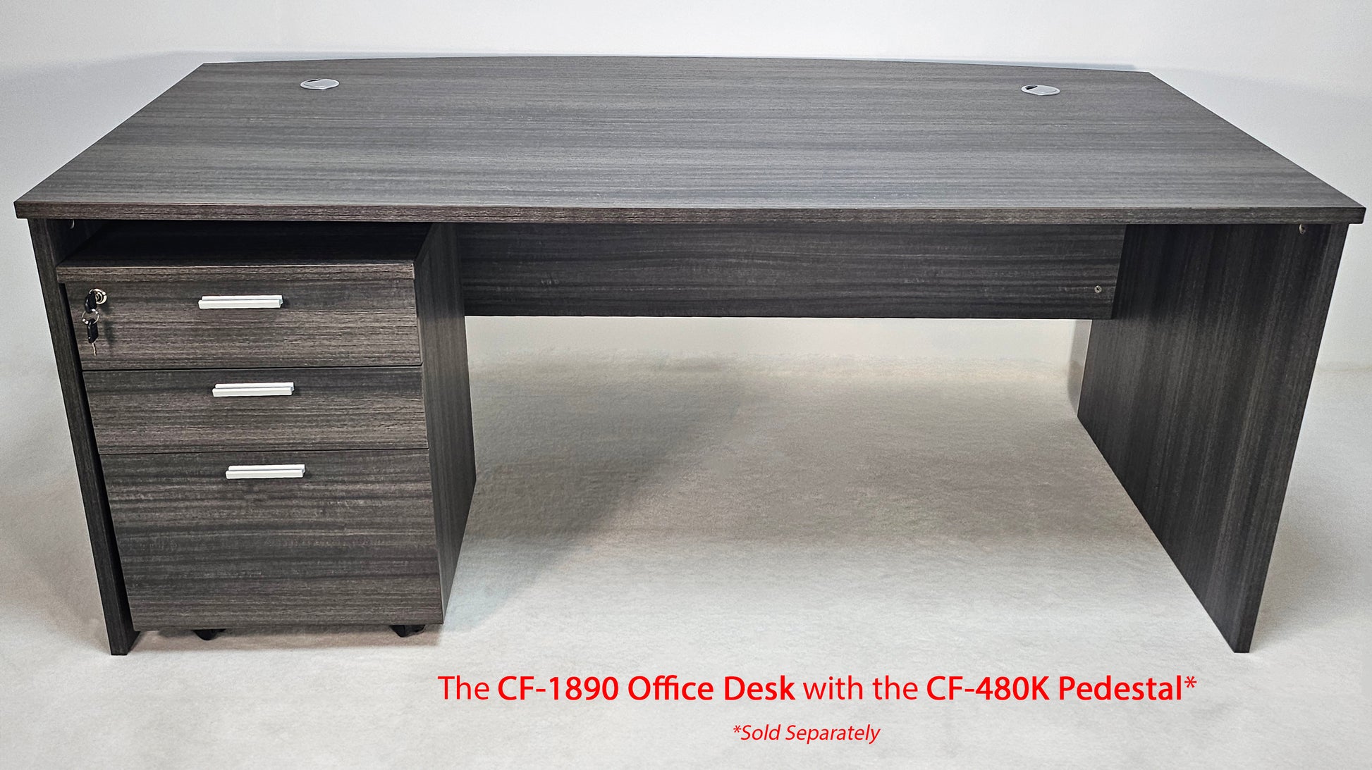 The CF-1890 is a Modern Office Desk and has a Bow Front design. This has been finished in a stunning Grey Oak Melamine; Perfect for any Commercial or Home environment. This desk is made from a high-quality 25mm thick chipboard with an E1 Grade MFC finish and a 2mm PUR Edge Banding. This material is Anti Scratch, Heat Resistant and Waterproof. This desk has two pre-cut holes to provide a cable management solution. This piece of furniture is delivered flat pack with easy self-assembly required*. A handy PDF instruction guide and detailed dimensions can be downloaded in the attachments above for convenience. These can also be supplied by Email if preferred.