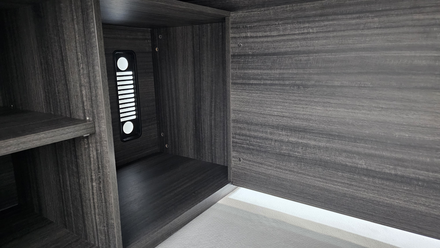 The CF-CRN-H return comes with two drawers, and a shelving unit which is partly on display and can be opened on a sliding door runner track. This return also features a convenient location for your CPU tower, from this section you can allow cables to run to the desktop freely.