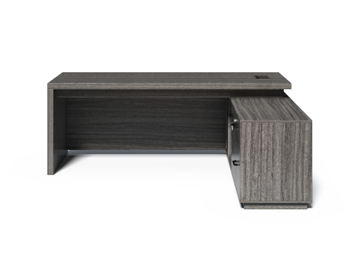 This desk has an integrated side return which can be assembled on either the left or the right.