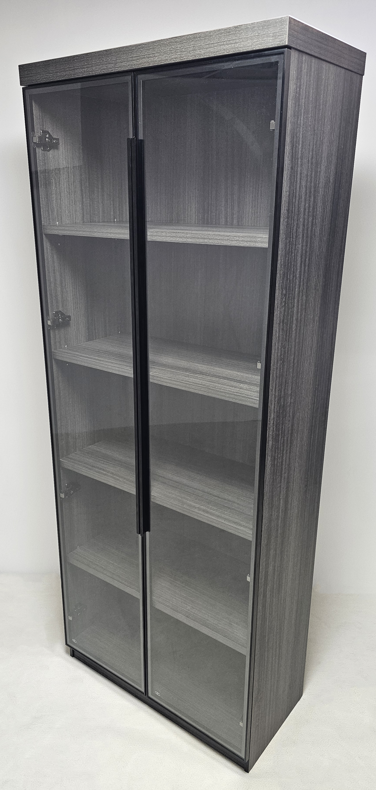 Modern Grey Oak Cupboard Shelving Display Unit with Glass Doors - CF-0804C