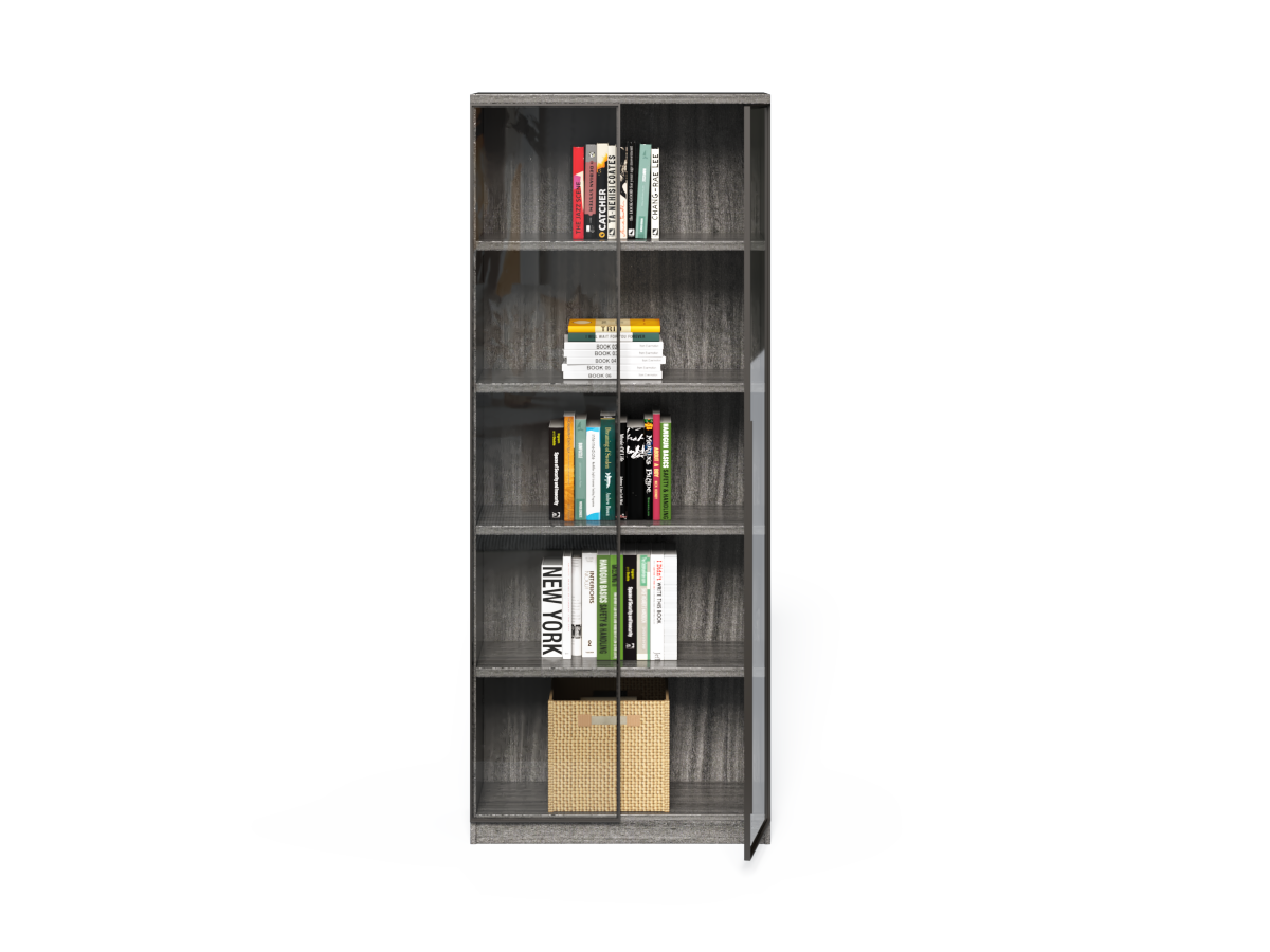 The CF-0804C is a tall open-shelf display cabinet finished in our Republic Grey Oak melamine. This hard-wearing, anti-scratch cabinet is made of quality E1-grade board and water-resistant material. The CF-0804C features two full-length tempered glass doors with black aluminium frames and handles. This cupboard has five compartments ideal for displaying awards, collectables, or picture frames. These can also house standard A4 Ring Binder folders if required.