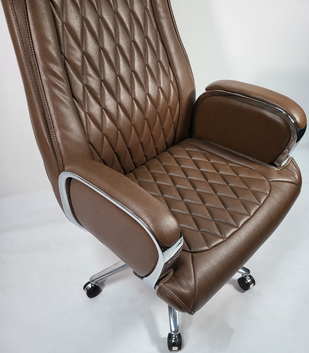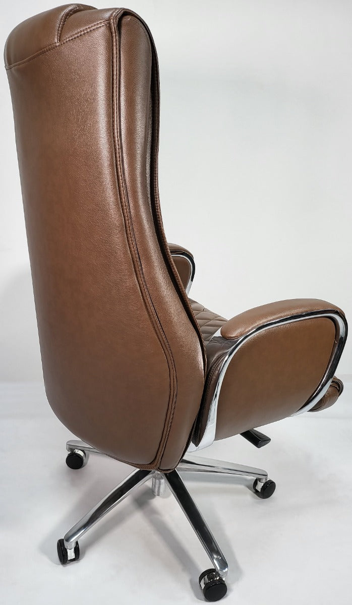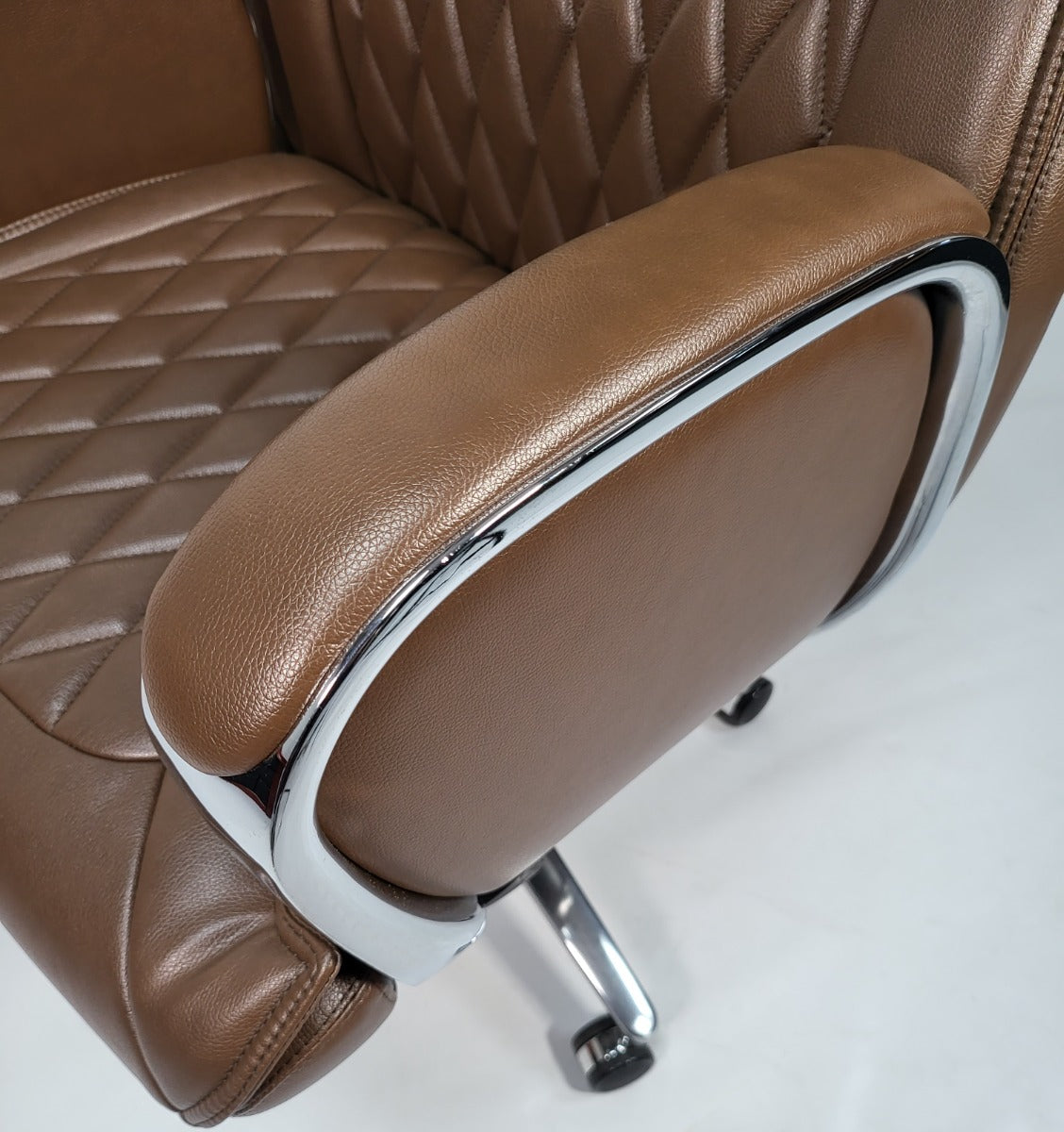 The CHA-1202A comes with light brown leather, which makes this chair seamlessly fit perfectly into modern office environments. This executive office chair features two fixed armrests which have been finished in chrome with contrasts nicely. The CHA-1202A comes with a tilt lock mechanism, and a height adjustment lever, which increases or decreases the seat's height. The CHA-1202A base has a five-star design, which comes with castors making it very easy to move on hard or soft carpeted flooring.