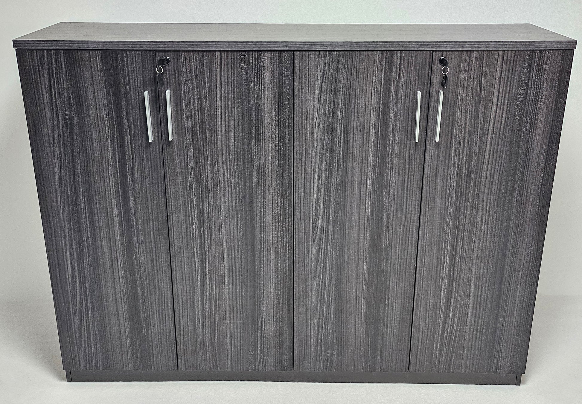 The S0616 has a modern design finished in our grey oak veneer. This 1600mm wide cupboard features two sets of double doors with locking capabilities. Each lock comes with a set of two keys. Behind these doors is a height-adjustable shelving, which is adjustable to preset heights with removable pegs.