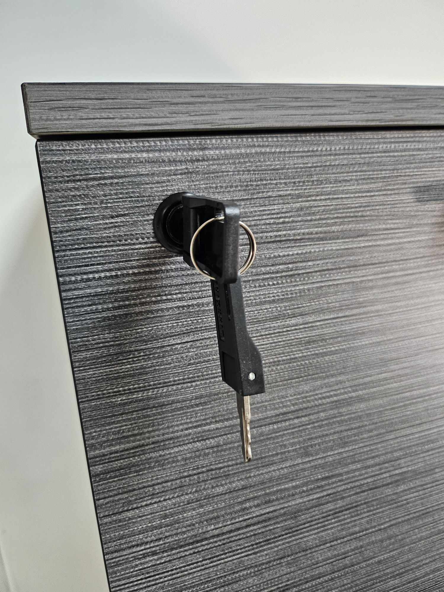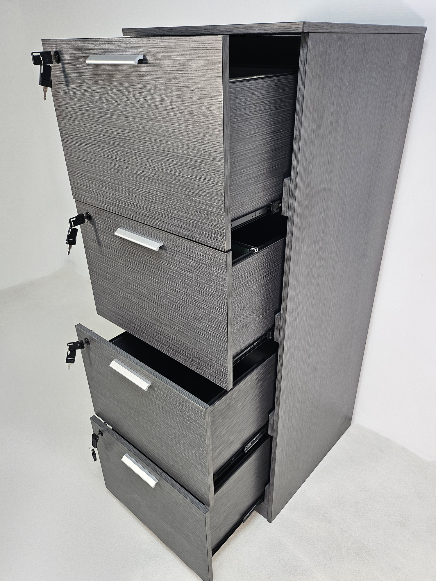 The DGWK-AB84 filing cabinet is a durable and stylish storage solution, finished in premium grey oak melamine for a professional, modern look. Designed with functionality and security in mind, it features four individual locking drawers, each supplied with its own lock for added protection.