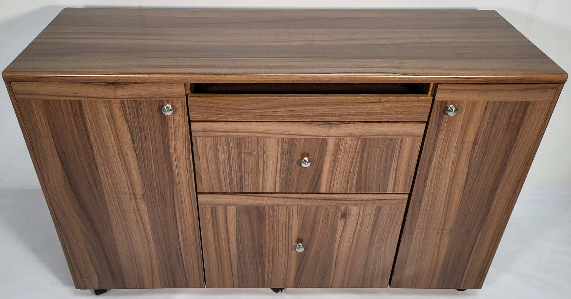 This return cupboard has been designed to be used at the desk height of your desk. There is a combination of drawers and cupboard space with one adjustable filling drawer designed to either foolscap or A4 size suspension files. All drawers are mounted on quality metal runners.