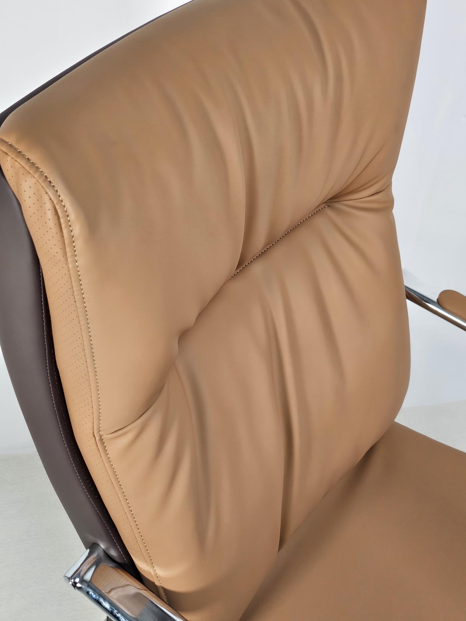Quality Beige Brown Leather Executive Boardroom Chair with Chrome Frame - FE-243