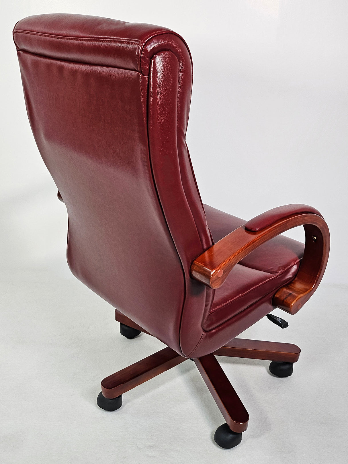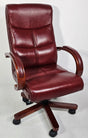 Genuine Burgundy Leather Executive Office Chair with Curved Walnut Arms - H-073