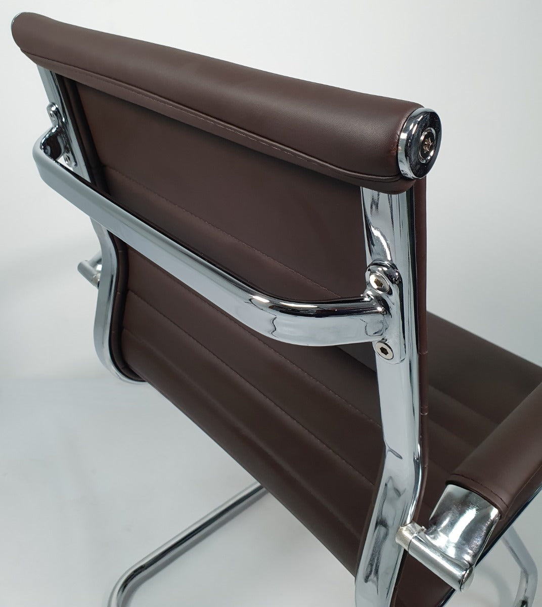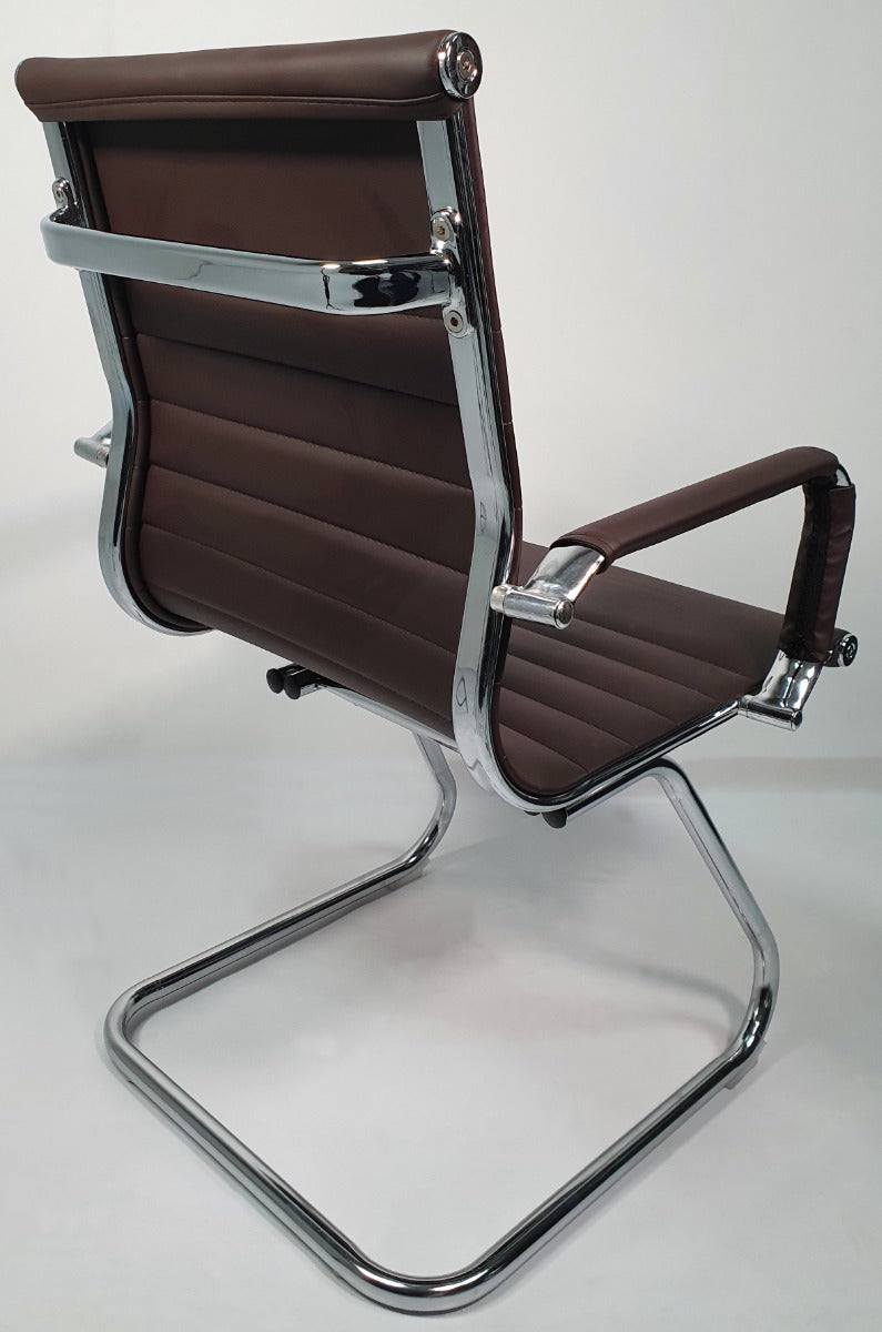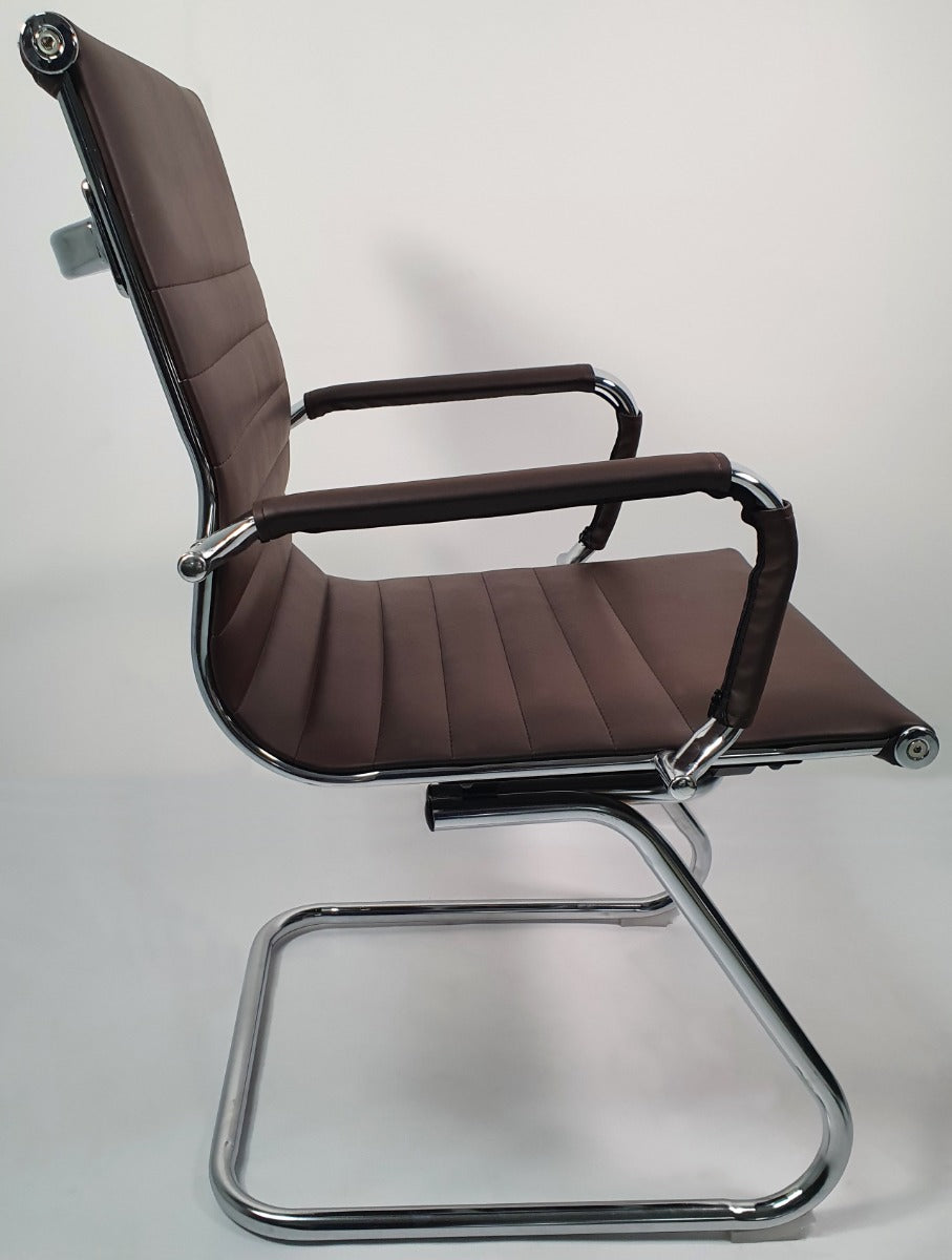 Contemporary Eames-Style Cantilever Visitor Chair in Brown Leather - HB-E13