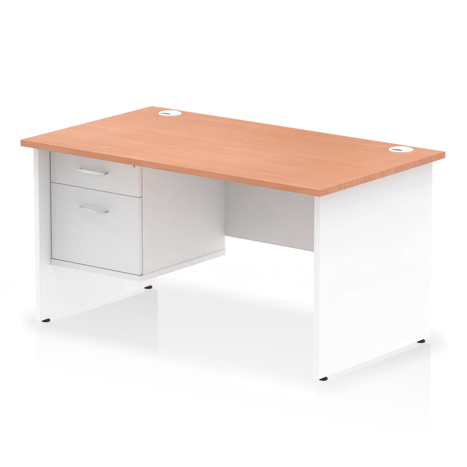 Impulse Panel End Straight Desk With Single Fixed Pedestal - 1400mm - Multiple Colour Options