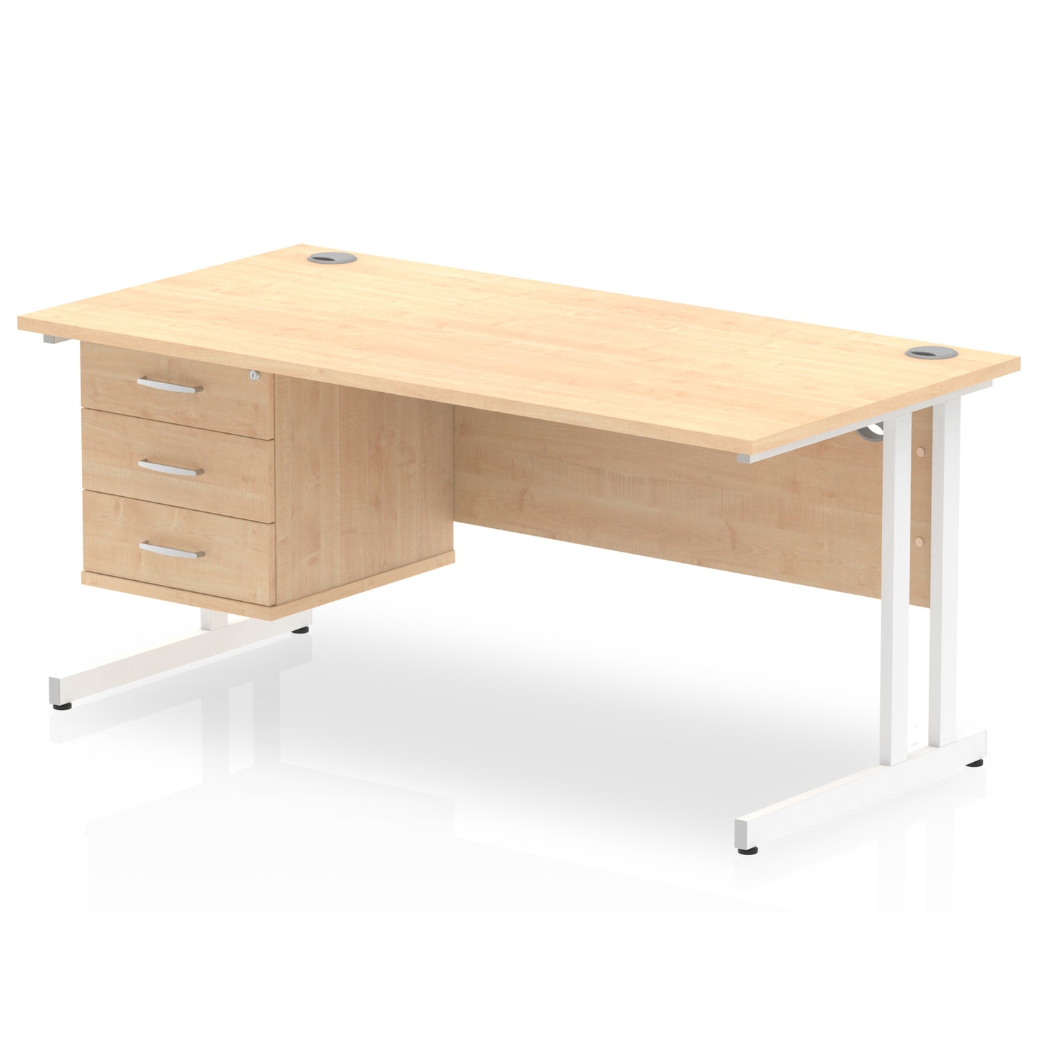 Impulse Cantilever Straight Desk With Single Fixed Pedestal - 1600mm - Multiple Colour Options