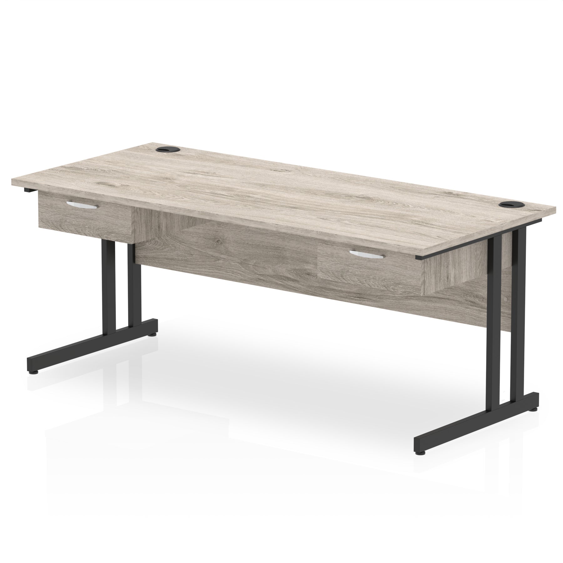Impulse Cantilever Straight Desk Black Frame With 2x One Drawer Fixed Pedestals - 1600mm or 1800mm - Multiple Colour Options