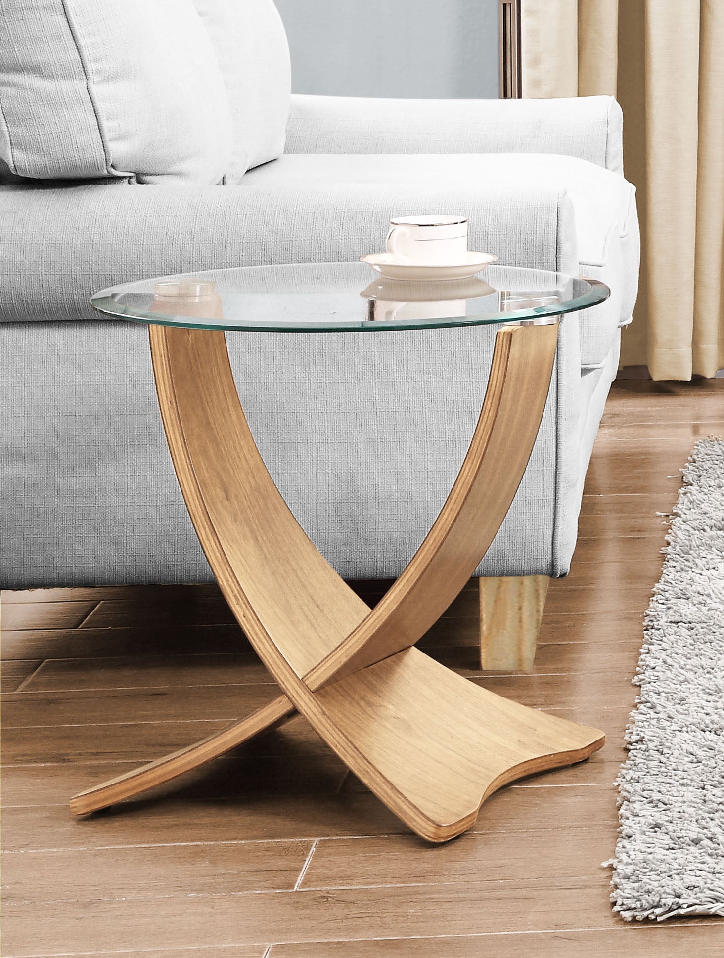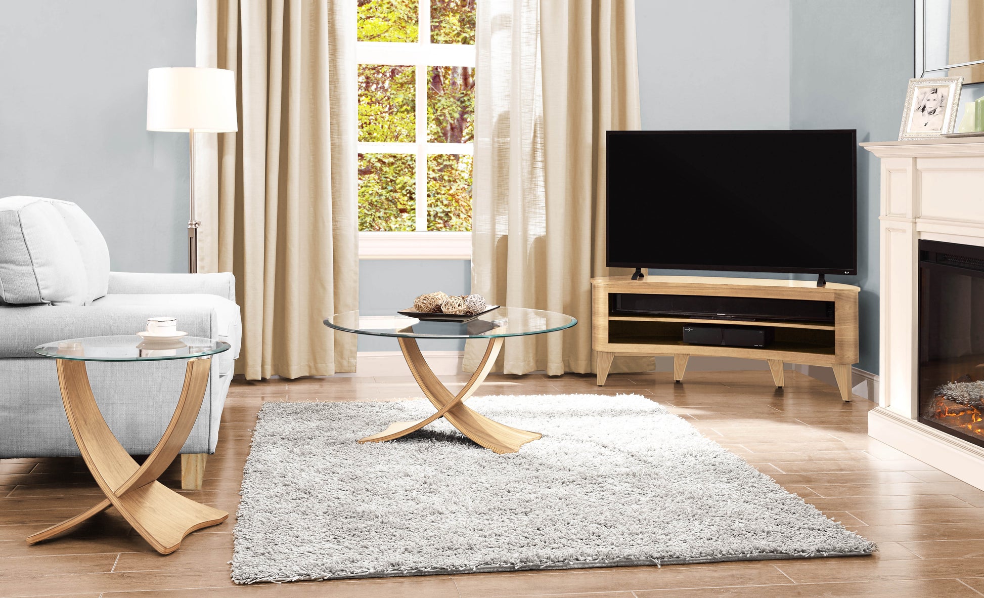 Beautiful Curve Design - Real Oak Veneer - Toughened Glass