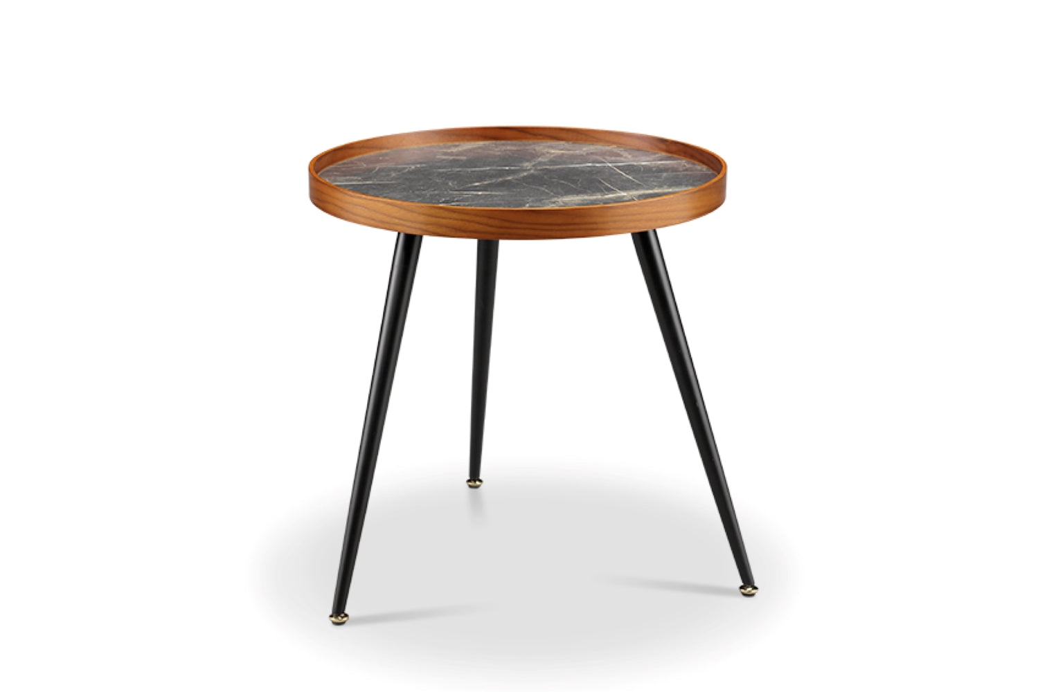 Round Black Marble Lamp / Side Table with Walnut Veneer - 500mm - JF329