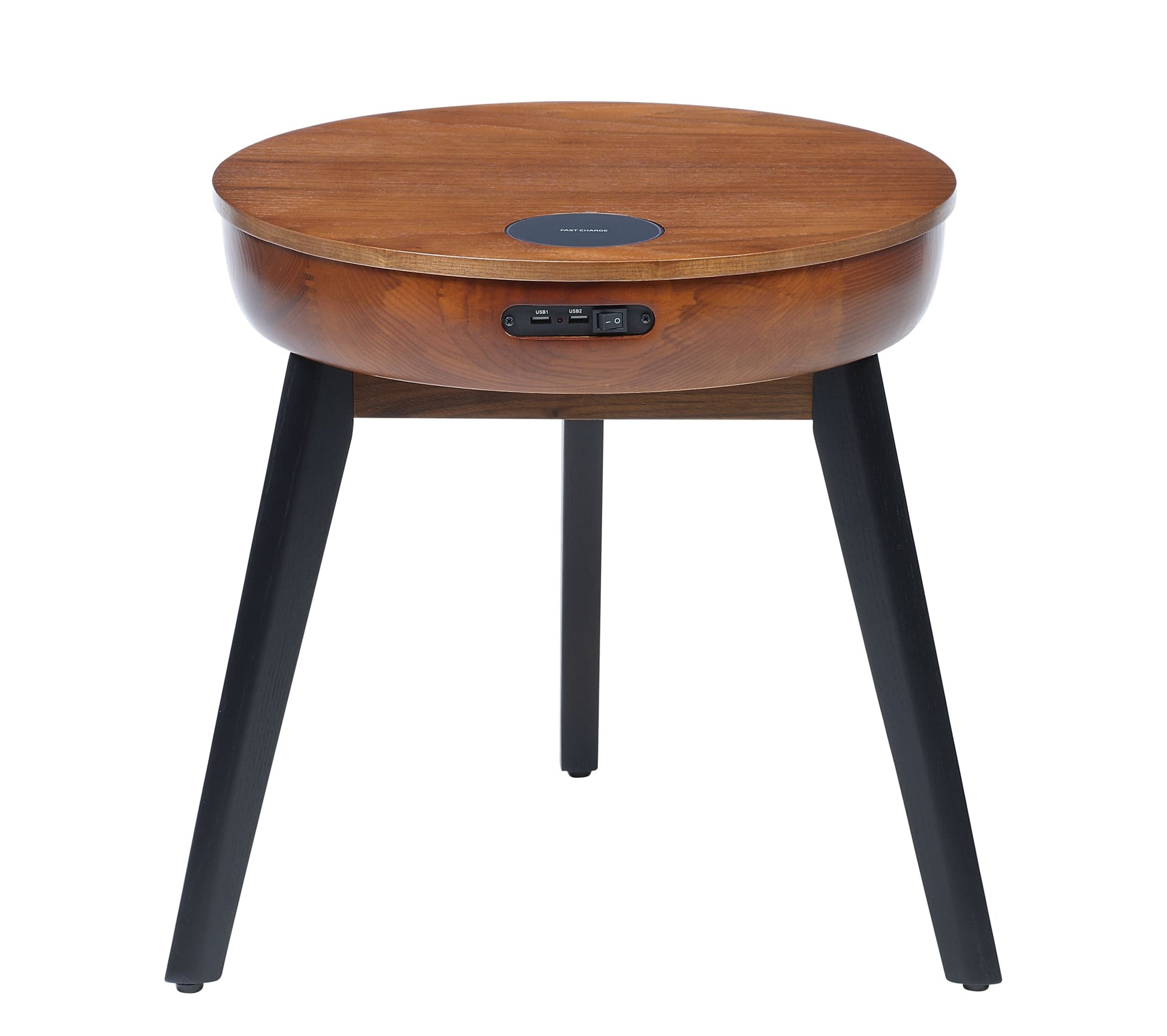 Smart Walnut Veneer Round Coffee / Lamp Table - Built in Speakers, Bluetooth, Wireless Charging and USB - 485mm - JF710