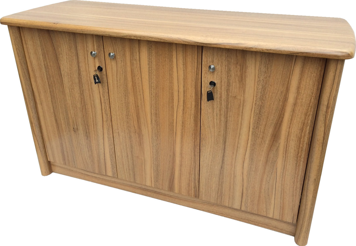 Three-door office cupboard sold with a matching colour to our Light Oak Executive Range. One single door and one set of twin doors both with locking capabilities are ideal for storing confidential files. Behind the doors is one double and one single fixed shelf.